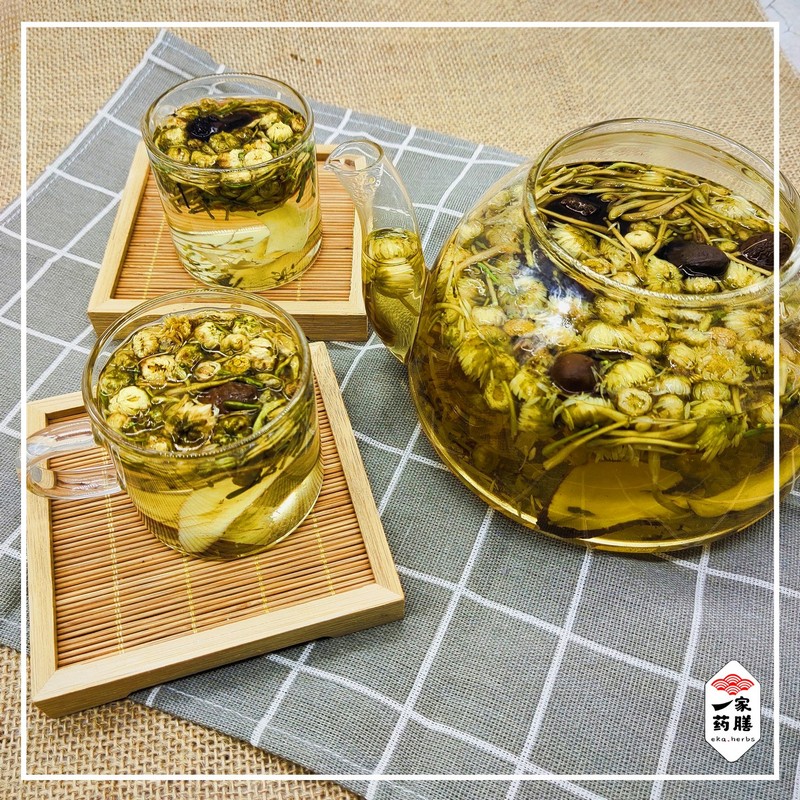 材料:胖大海、金银花、甘草、菊花、甜菊叶